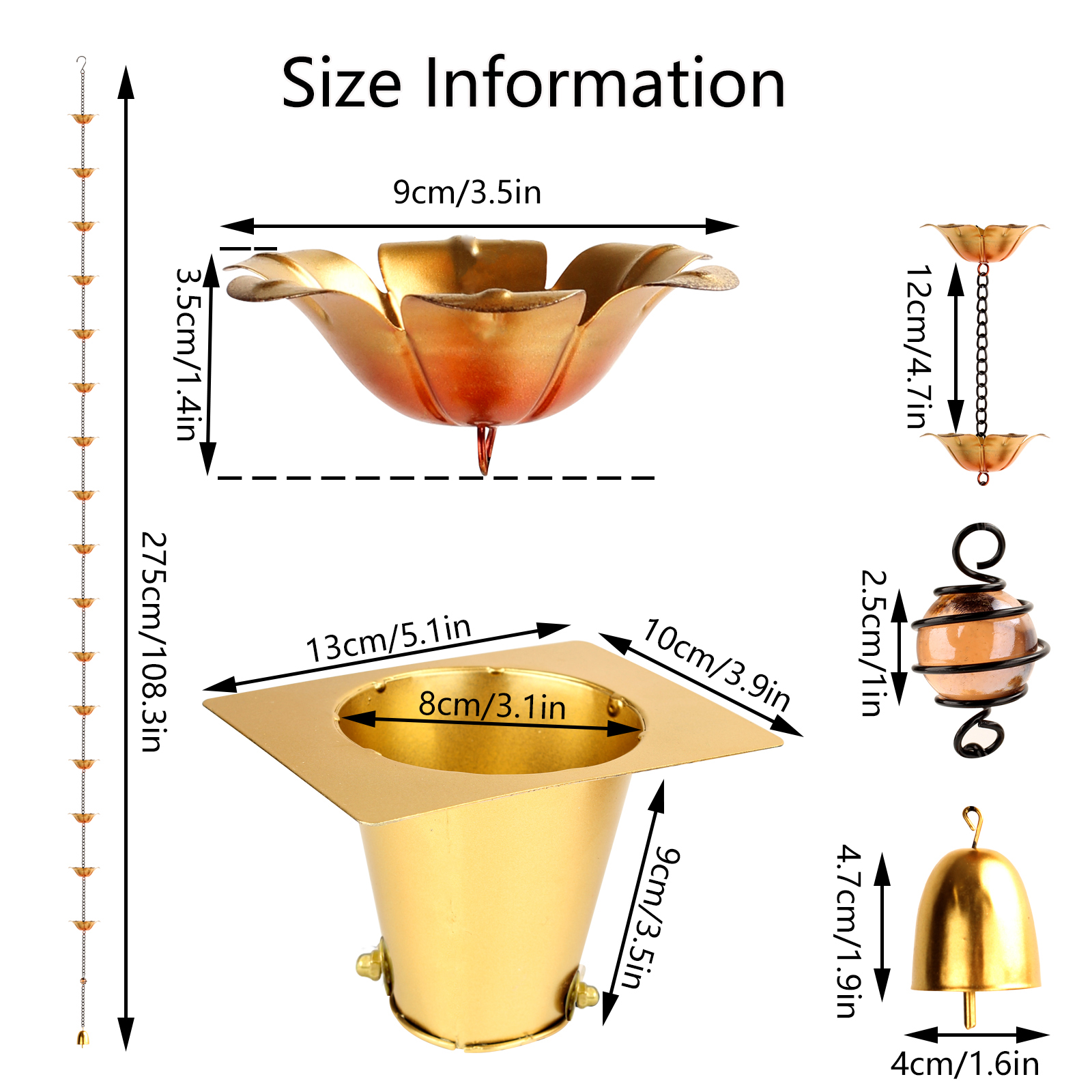 PREMIUM QUALITY MATERIAL: The rain catcher is made of durable iron material to ensure stability and durability in all weather conditions. Whether it's direct sunlight or rain, this rain catcher chain will stand up to the elements and won't fade or break over time.